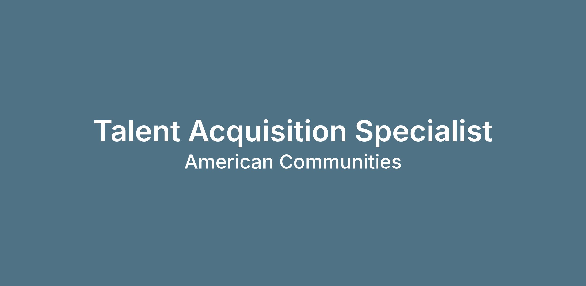 American Communities is seeking an enthusiastic, results-oriented Talent Acquisition Specialist to help attract and hire exceptional talent for our growing organization. This role plays a critical part in delivering a seamless candidate experience while supporting hiring managers and advancing our recruiting initiatives.