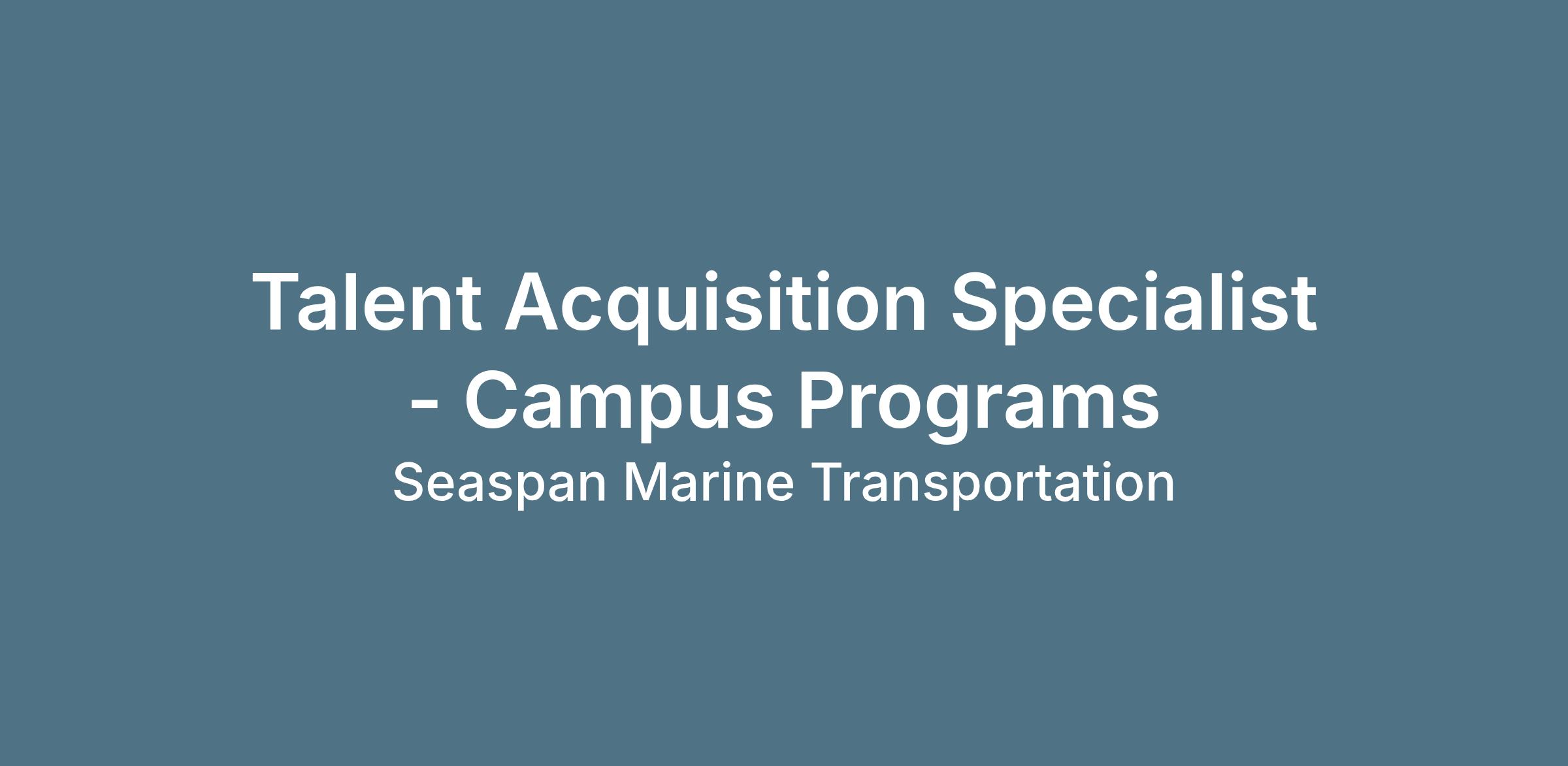 DescriptionOur team is looking for a Talent Acquisition Specialist (TAS) who will primarily focus on identifying and attracting early top talent. In this role, you will manage full-cycle campus recruitment, build strong partnerships with our university partners, and help develop a strong pipeline of future talent for Seaspan. This person will focus primarily on high-volume campus recruitment while also supporting the rest of the TA team with internal/external recruitment, as needed.