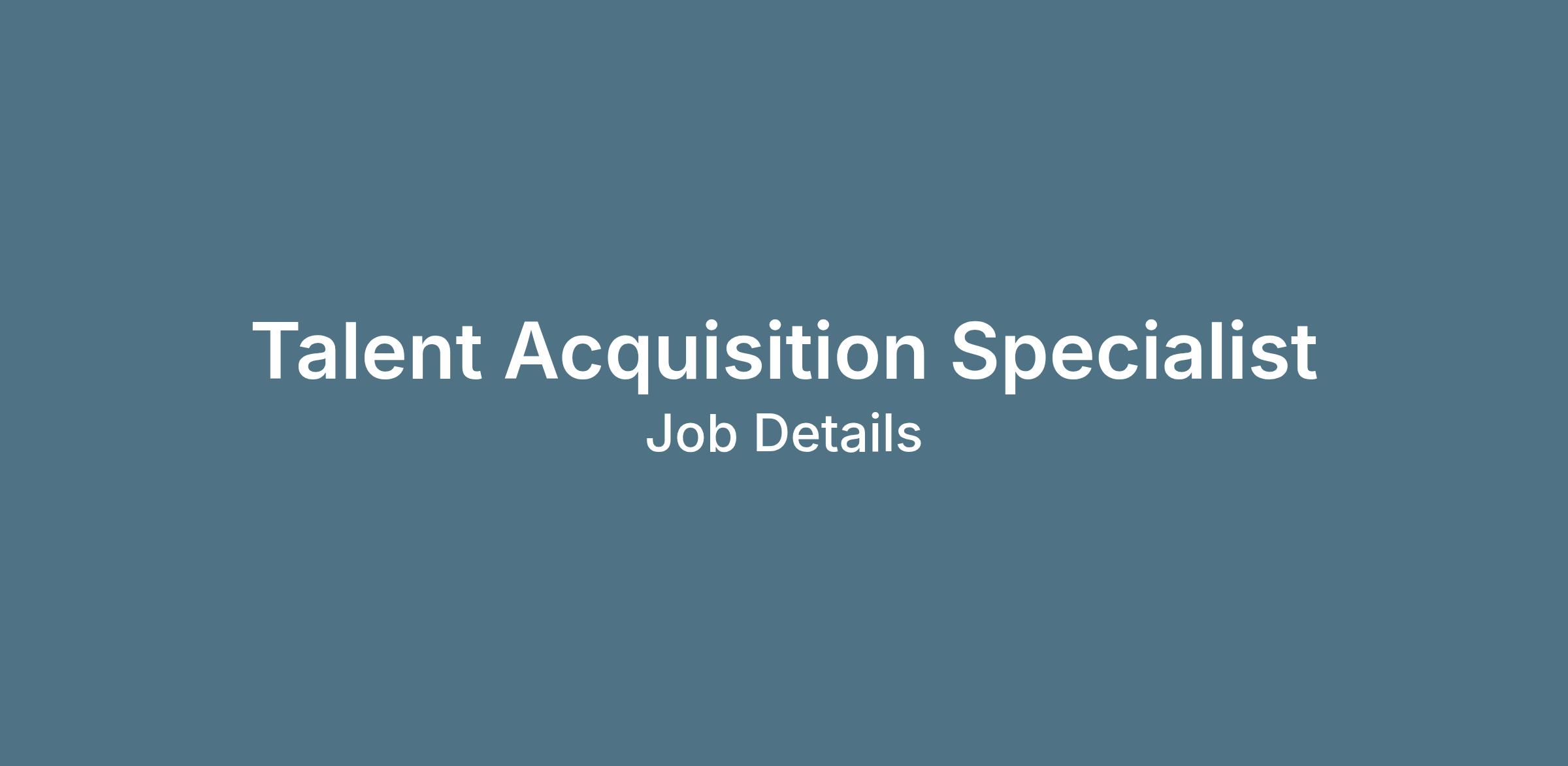 For more information read the full Role Description: Talent Acquisition Specialist