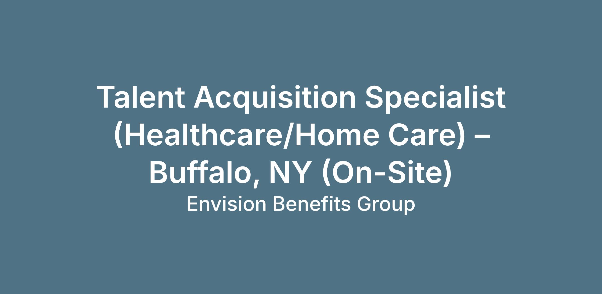 Envision Benefits Group is supporting a mission-driven, people-first healthcare organization in the Buffalo area with the hiring of a Talent Acquisition Specialist. This is an in-person role based in Buffalo, supporting recruitment across multiple New York State locations. If you enjoy high-touch recruiting, managing multiple requisitions, and creating a strong candidate experience from first contact through onboarding, this could be a great fit.