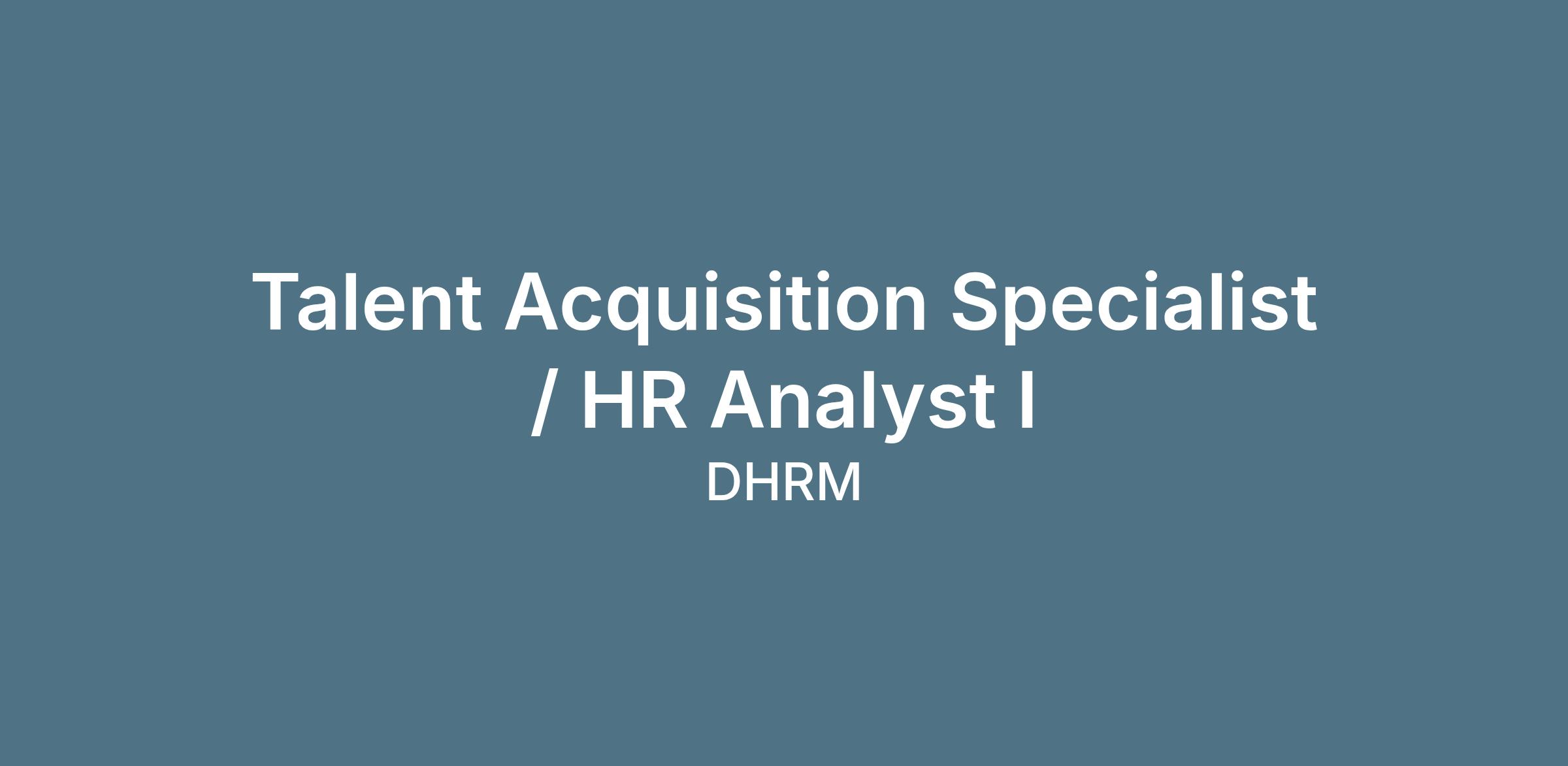 Title: TALENT ACQUISITION SPECIALIST / HR ANALYST I