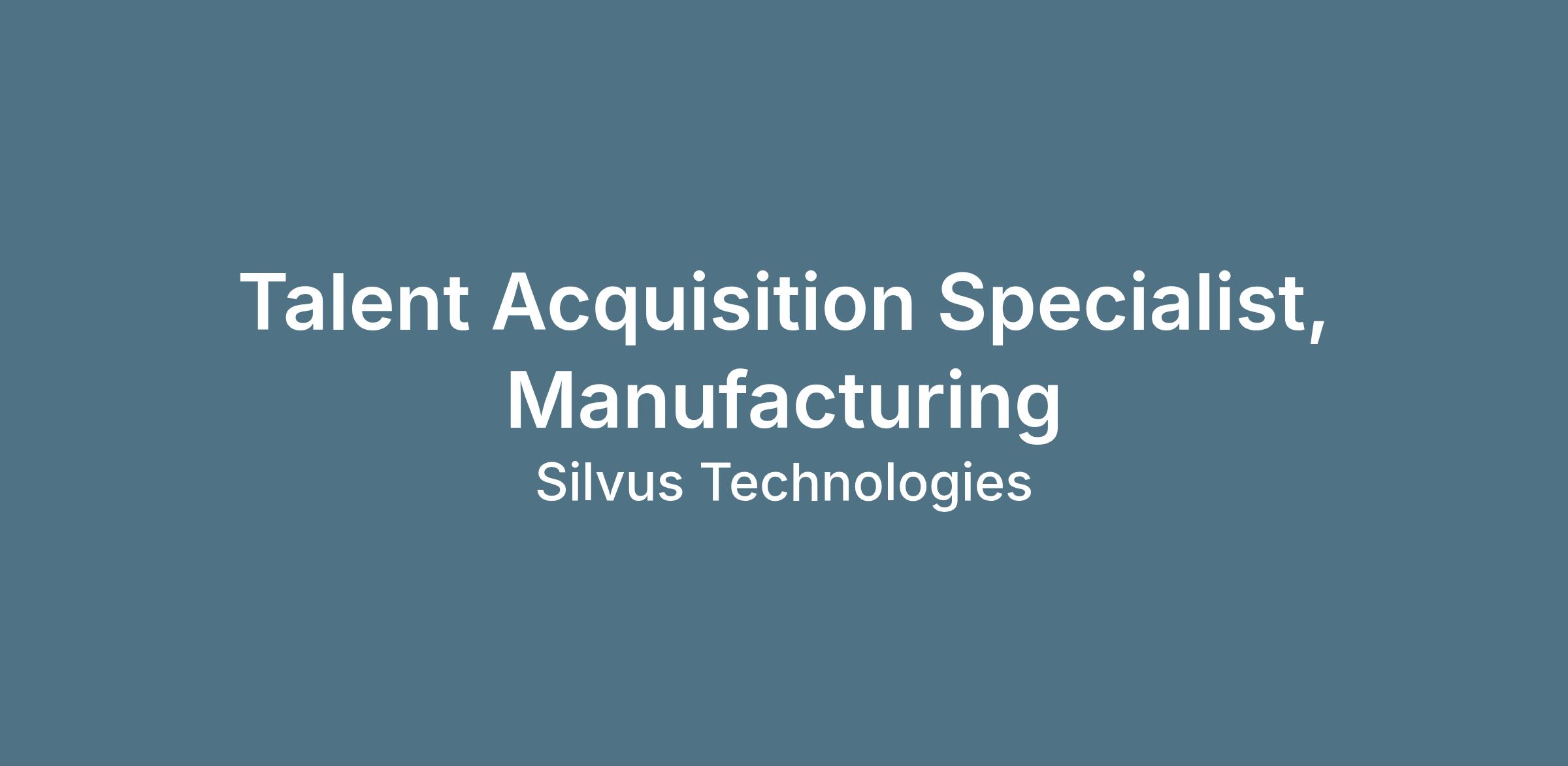 Silvus is seeking a full-time Talent Acquisition Specialist, Manufacturing who will report to the Senior Talent Acquisition Specialist on the Recruiting and Talent Acquisition team to provide support for the Recruiting team throughout all stages of the full recruiting cycle efforts for all Manufacturing positions. The successful individual in this role will partner closely with hiring managers to help attract, assess, and hire top talent while delivering a great candidate experience.