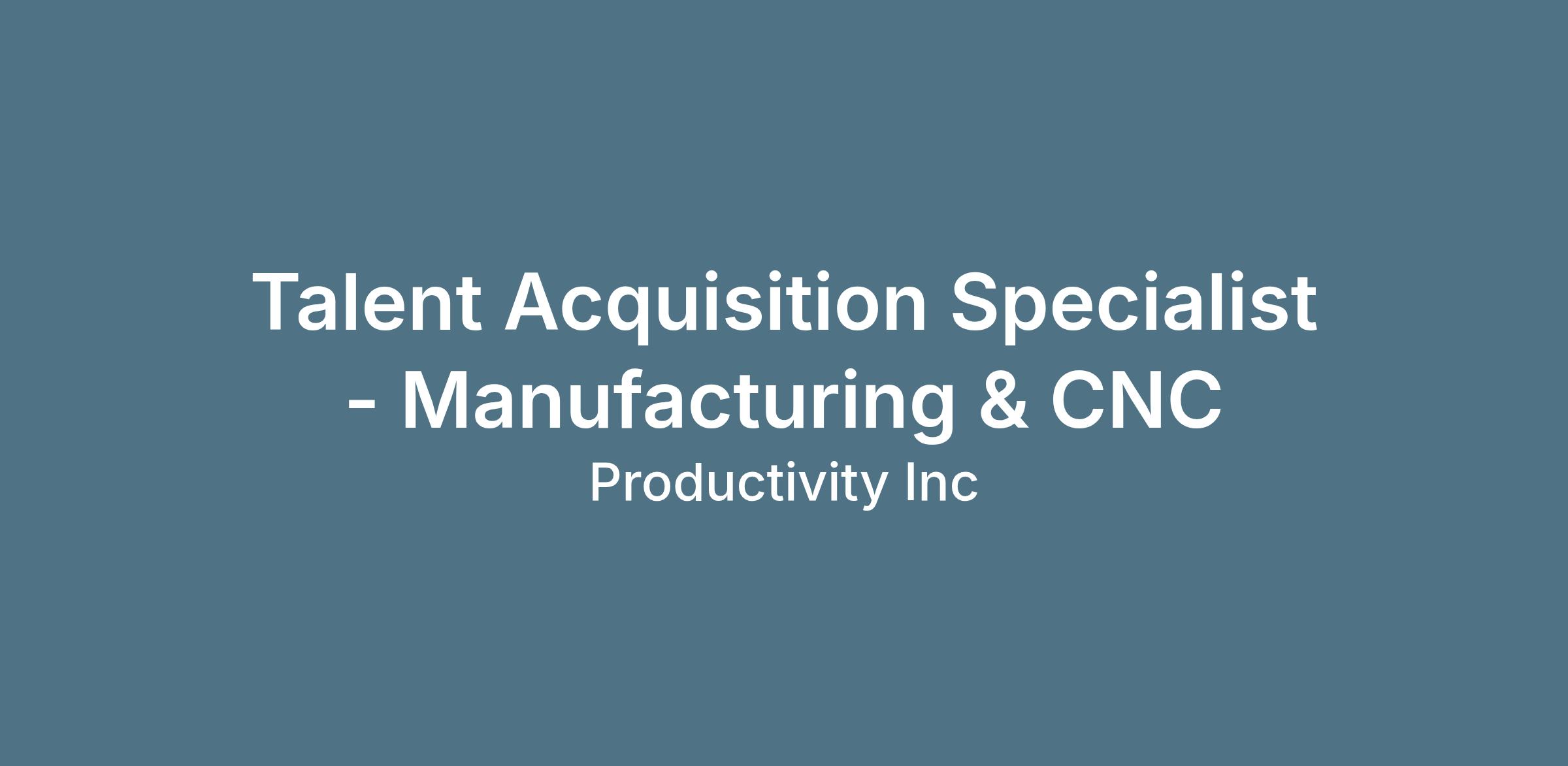 Productivity, Inc. is seeking an experienced Talent Acquisition Specialist to help us find the skilled professionals who keep advanced manufacturing running. If you understand the world of machining, CNC equipment, automation, and technical service—and know how to identify great talent in those fields—this could be a great fit.