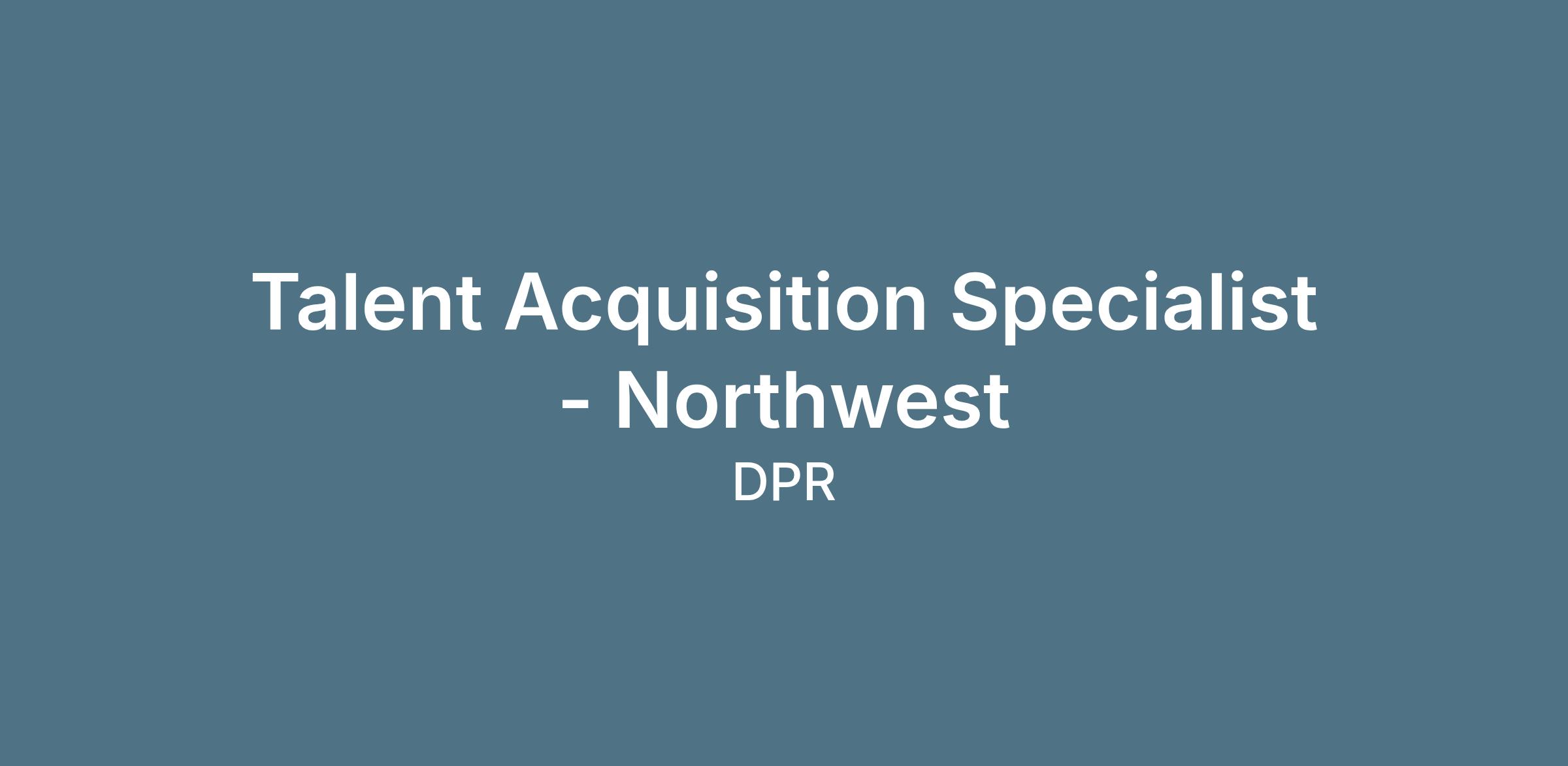 DPR Construction is seeking a Talent Acquisition Specialist with the energy and drive to help us hire the best and the brightest for our company in the Northwest Region. Talent Acquisition Specialists are responsible for identifying strong candidates into a variety of positions.