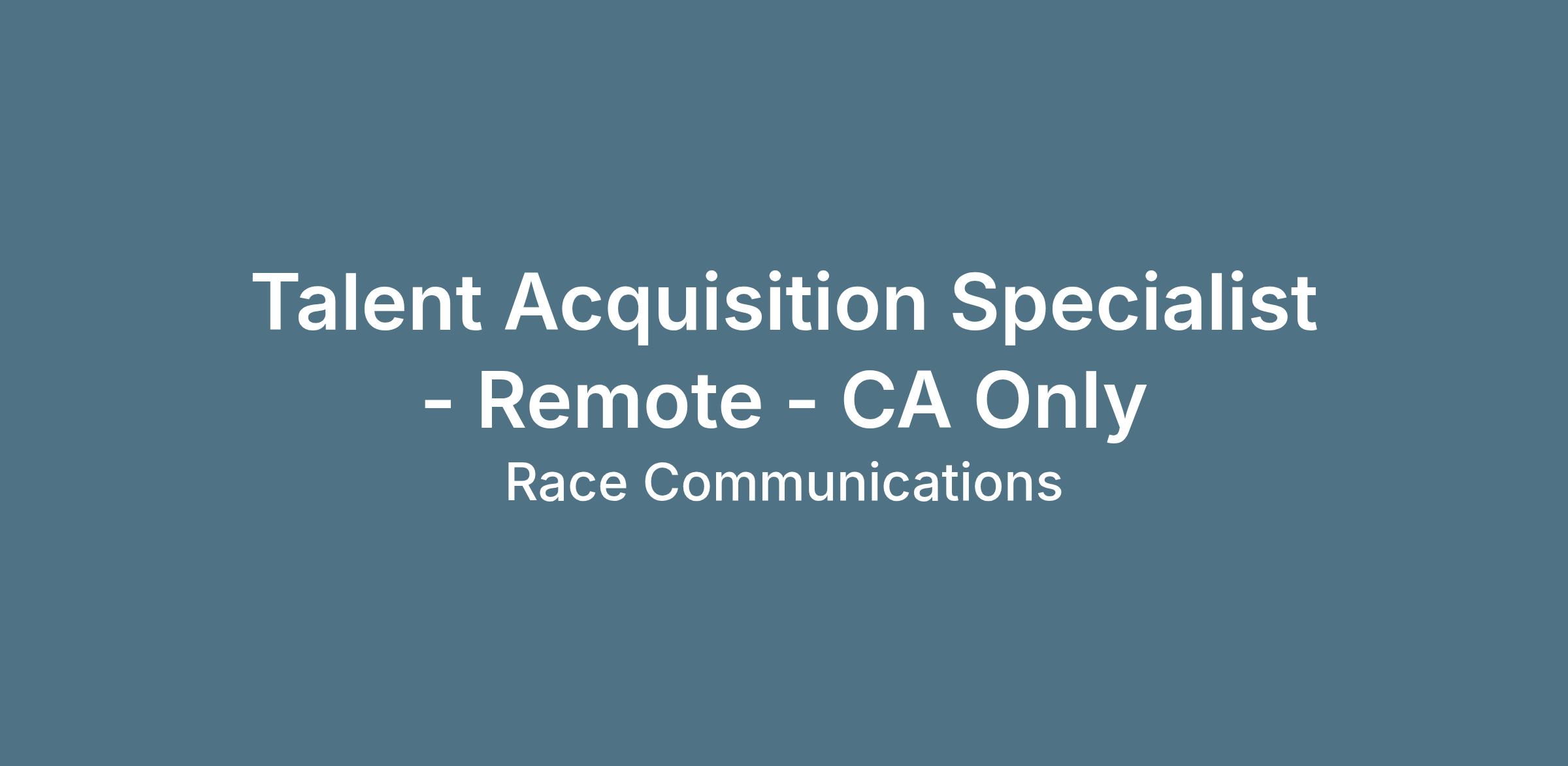 Location: Remote: California. Work will be primarily performed remotely from home office. Employee may be required to utilize personal phone and internet services to perform telecommuting with reimbursement according to Race's telecommuting policy. Occasional travel to and work from other Race offices or off-site locations may be required.