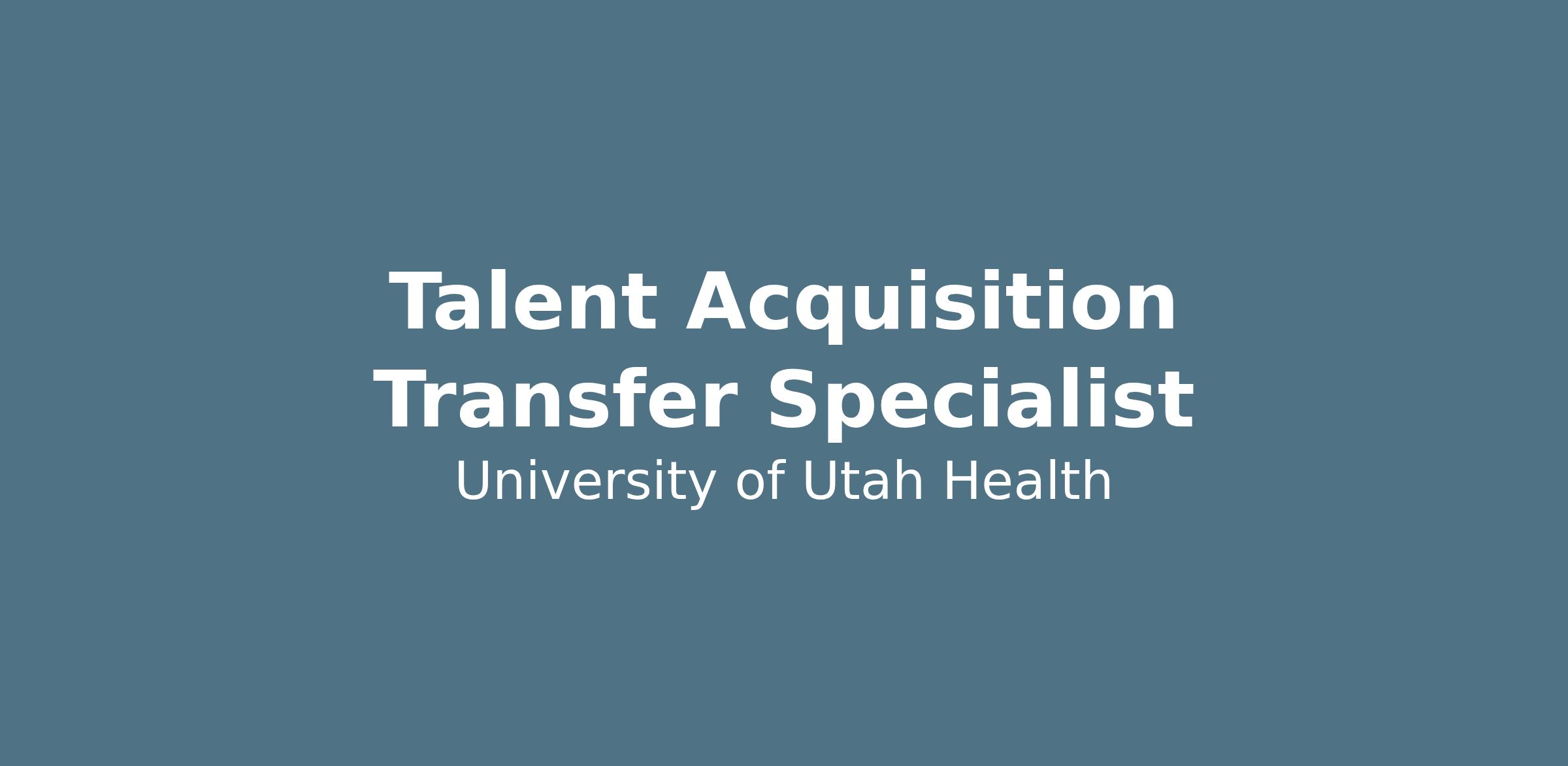 University of Utah Health is seeking a full-time Talent Acquisition Transfer Specialist to join our dynamic team!