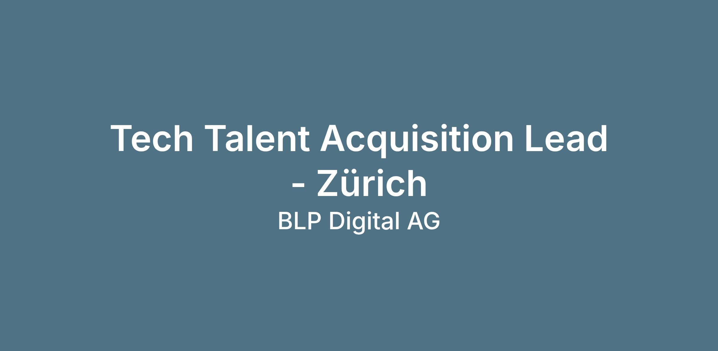 Tech Talent Acquisition Lead - Zürich