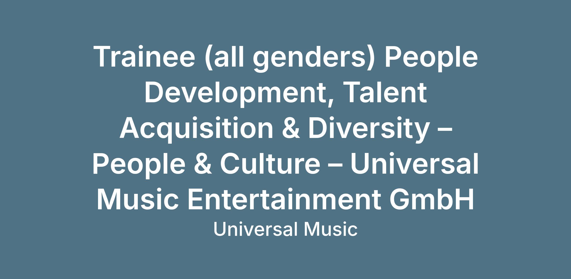 Deine zukünftige Rolle ist eingegliedert in unsere Abteilung People & Culture. Wir als Team setzen uns dafür ein, dass wir alle bei Universal Music unser volles Potenzial in einem kreativen und wertebasierten Umfeld entfalten können.