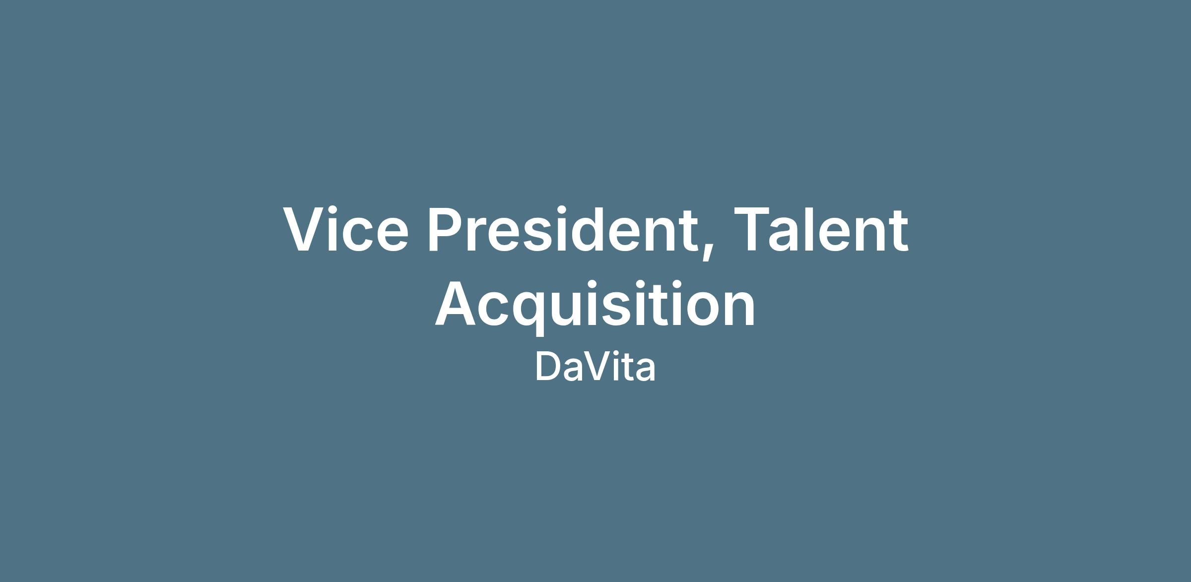 This leader will set strategy, drive execution, and continuously improve how DaVita attracts, hires, and onboards teammates, ensuring the right teammates are in the right roles at the right time to support exceptional patient care.